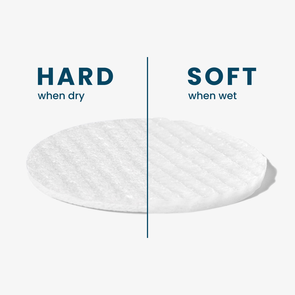 Känns lika bra att använda som vanliga bomullsrondeller. Tillsätt bara en skvätt vatten för att mjuka upp den.