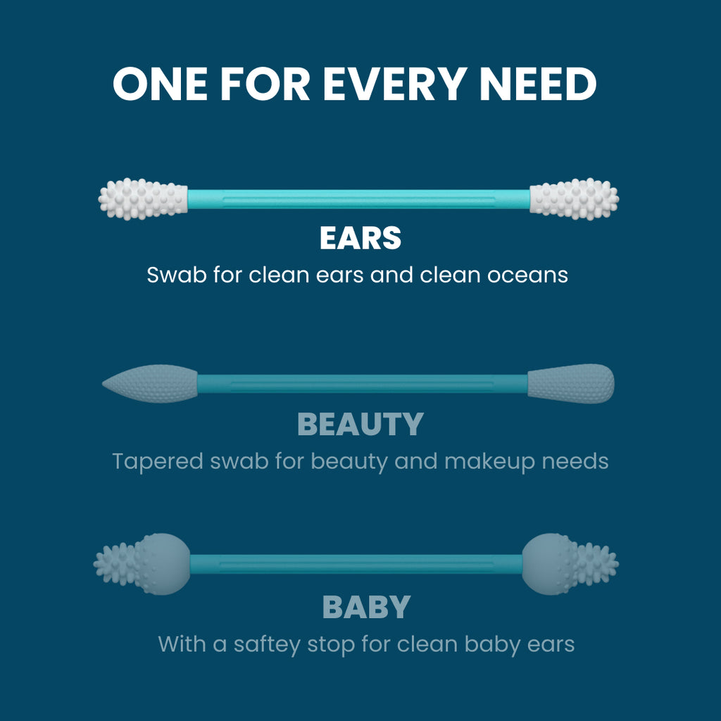 Din LastSwab kommer att ersätta ca 1000 engångspinnar. För att den ska hålla så länge som möjligt ska du rengöra den försiktigt mellan varje användning. Använd fingertopparna och gnugga spetsarna med tvål och vatten för att få dem rena. Förvara den alltid i fodralet och håll den borta från värme. Rengör fodralet med handsprit och aldrig i diskmaskin.